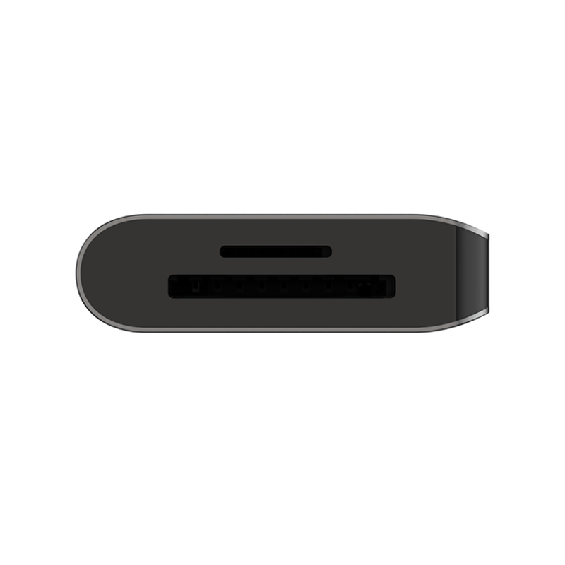 - Connects a laptop to a HDMI port, SD and MicroSD slots, and 2x USB-A ports though a single USB-C port