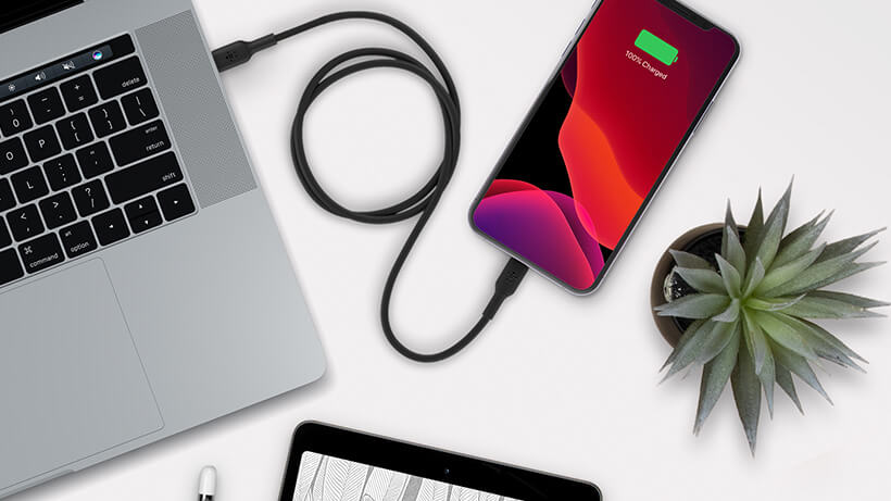 Fast charge or easily sync music and photos to your iPhone or iPad with our reliable MFi-certified USB-C to Lightning cables. When paired with an 18W USB-PD Charger, you can see charge speeds for your iPhone 8 or later of 0 to 50% in 30 minutes.* MFi certification means your USB-C to Lightning cables are guaranteed to work with your iPhone and iPad, giving you peace of mind.
